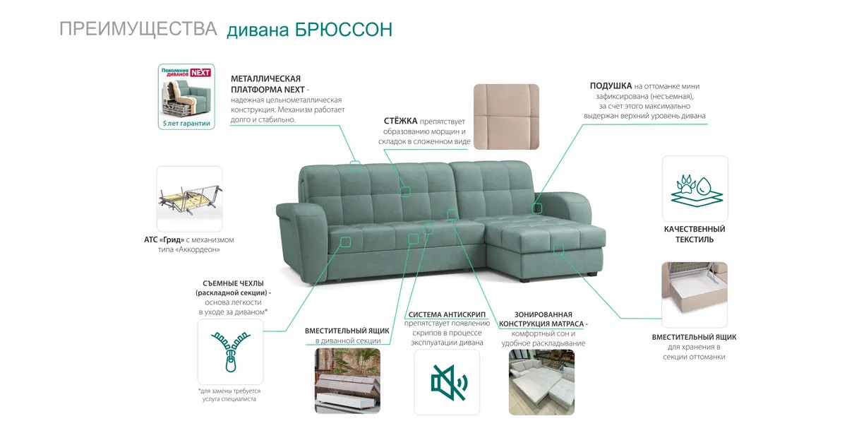 Диван Брюссон NEXT 22 155 К-1 с оттоманкой мини
