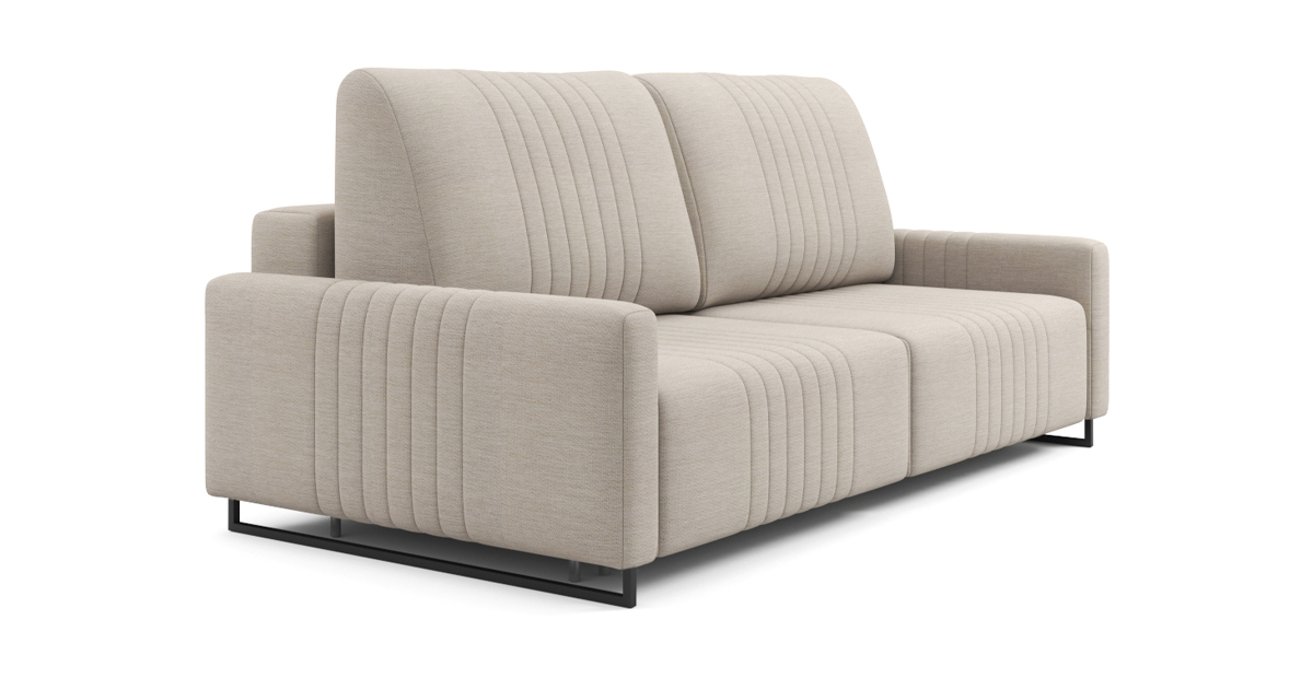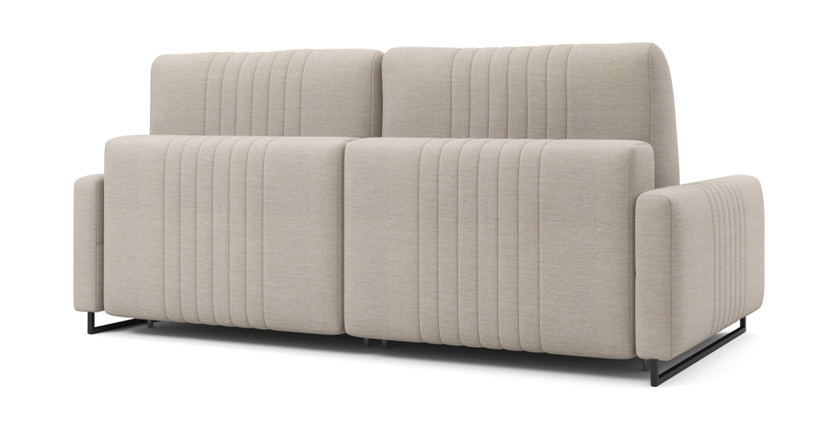 Эргономичный дизайн и мягкие приспинные подушки обеспечивают максимальный комфорт при использовании. Диван оснащен механизмом трансформации Тик-так, что позволяет легко преобразовать его в удобное спальное место. К модели также можно отдельно приобрести бельевой ящик для хранения.