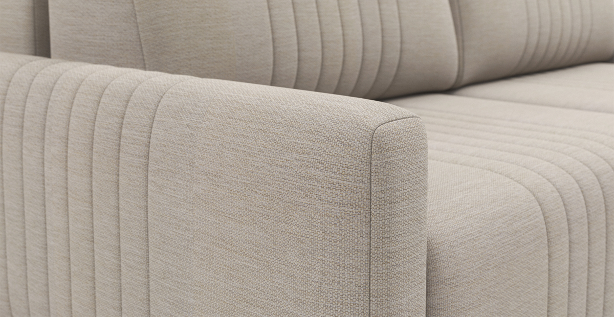 Спинка модели выполнена в основной обивочной ткани, что позволит вписать его в пространство-студию, легко разделив интерьер на функциональные зоны.