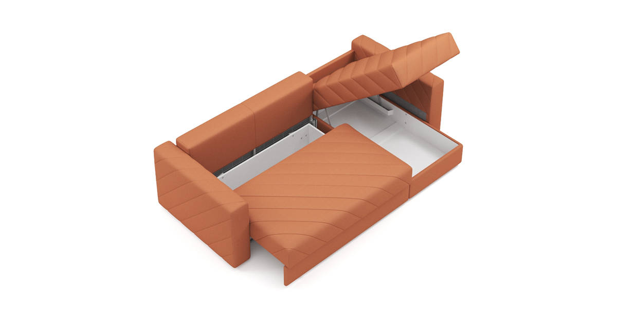 Вместительный бельевой ящик, расположенный под сидением, станет незаменимым помощником в организации пространства. Здесь вы сможете удобно хранить постельное белье, одеяла и другие необходимые вещи, поддерживая порядок в вашей гостиной.