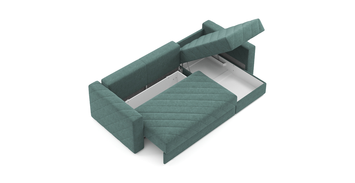 Вместительный бельевой ящик, расположенный под сидением, станет незаменимым помощником в организации пространства. Здесь вы сможете удобно хранить постельное белье, одеяла и другие необходимые вещи, поддерживая порядок в вашей гостиной.