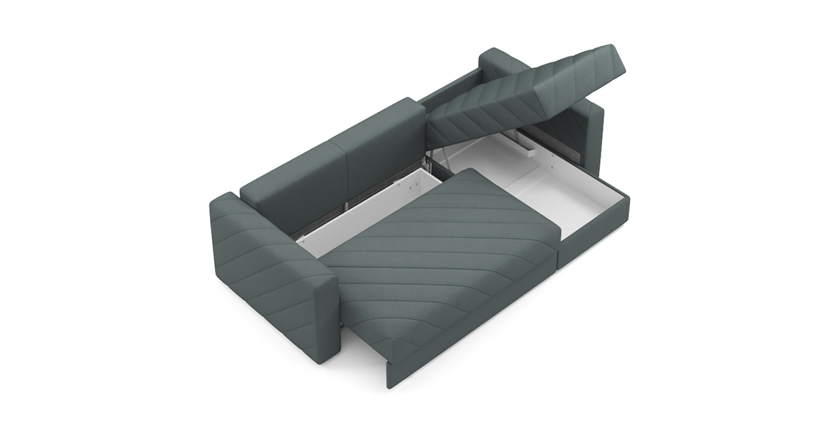 Вместительный бельевой ящик, расположенный под сидением, станет незаменимым помощником в организации пространства. Здесь вы сможете удобно хранить постельное белье, одеяла и другие необходимые вещи, поддерживая порядок в вашей гостиной.