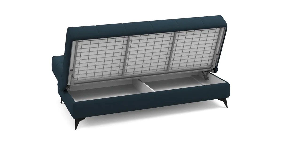 Несмотря на компактные размеры дивана Виго, под его основанием прячется полноценный бельевой ящик. Металлическая платформа дивана надёжна и очень долговечна благодаря легирующим добавкам и дополнительным рёбрам жёсткости в местах максимальной нагрузки. Высокопрочная сварная конструкция под мягким настилом позволяет достигнуть оптимального соотношения упругости и комфорта.
