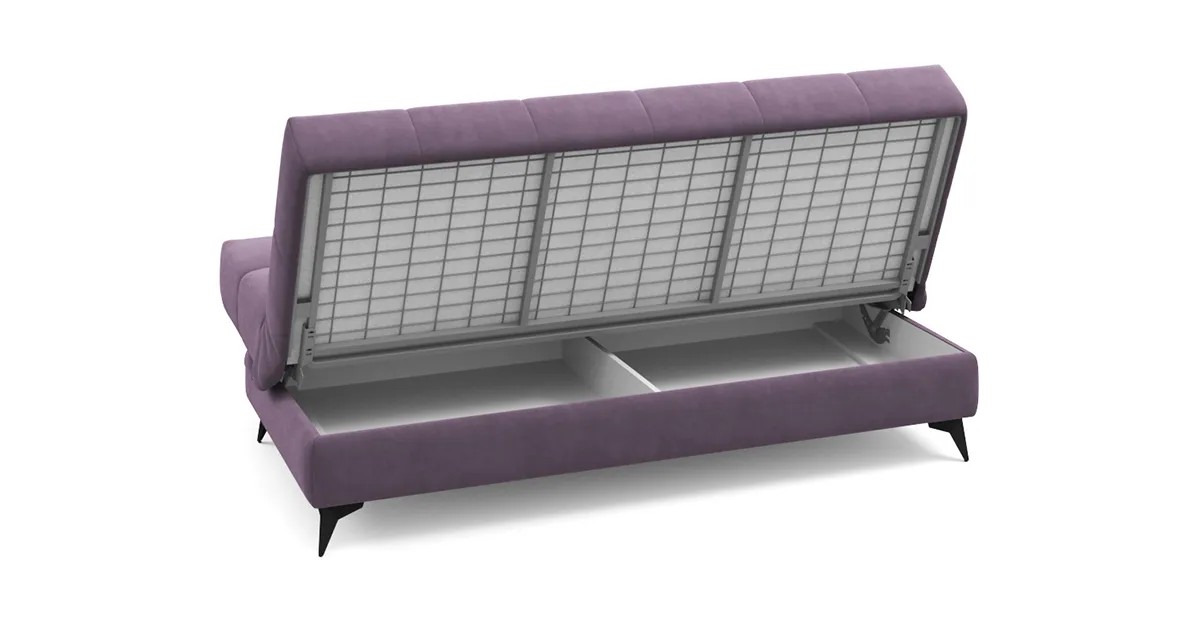 Несмотря на компактные размеры дивана Виго, под его основанием прячется полноценный бельевой ящик. Металлическая платформа дивана надёжна и очень долговечна благодаря легирующим добавкам и дополнительным рёбрам жёсткости в местах максимальной нагрузки. Высокопрочная сварная конструкция под мягким настилом позволяет достигнуть оптимального соотношения упругости и комфорта.