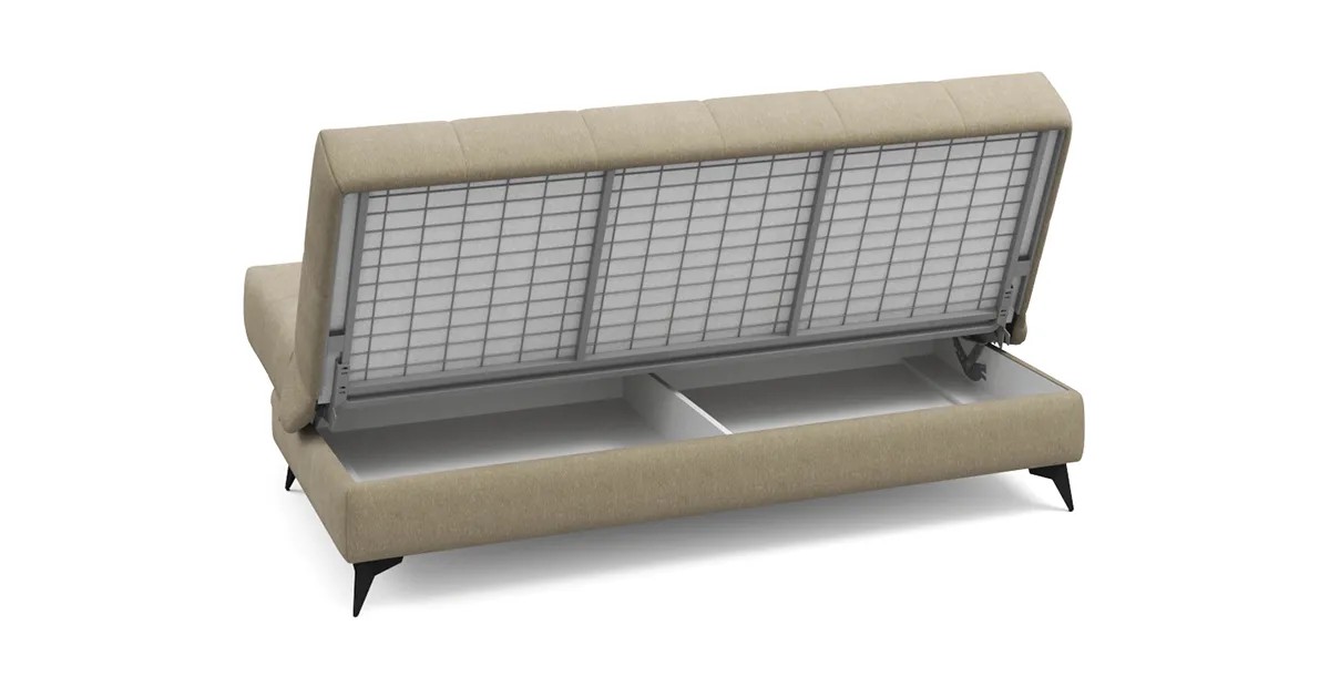 Несмотря на компактные размеры дивана Виго, под его основанием прячется полноценный бельевой ящик. Металлическая платформа дивана надёжна и очень долговечна благодаря легирующим добавкам и дополнительным рёбрам жёсткости в местах максимальной нагрузки. Высокопрочная сварная конструкция под мягким настилом позволяет достигнуть оптимального соотношения упругости и комфорта.