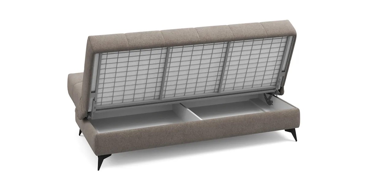 Несмотря на компактные размеры дивана Виго, под его основанием прячется полноценный бельевой ящик. Металлическая платформа дивана надёжна и очень долговечна благодаря легирующим добавкам и дополнительным рёбрам жёсткости в местах максимальной нагрузки. Высокопрочная сварная конструкция под мягким настилом позволяет достигнуть оптимального соотношения упругости и комфорта.