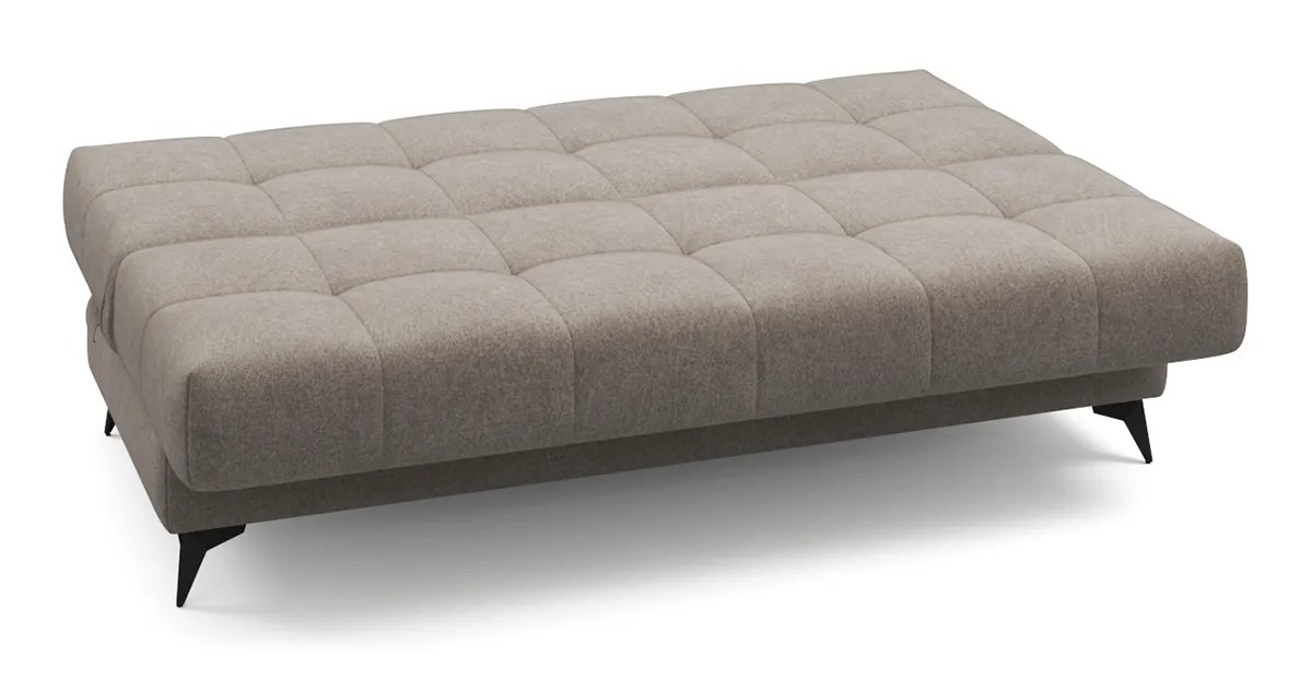 Представленный диван с механизмом Клик-кляк, являющимся усовершенствованной версией механизма Книжка, позволяет легким движением превратить компактный диван в просторное спальное место без зазоров посередине. Особенностью такого механизма является возможность трансформации дивана в три положения – для сидения, отдыха полулежа и сна.