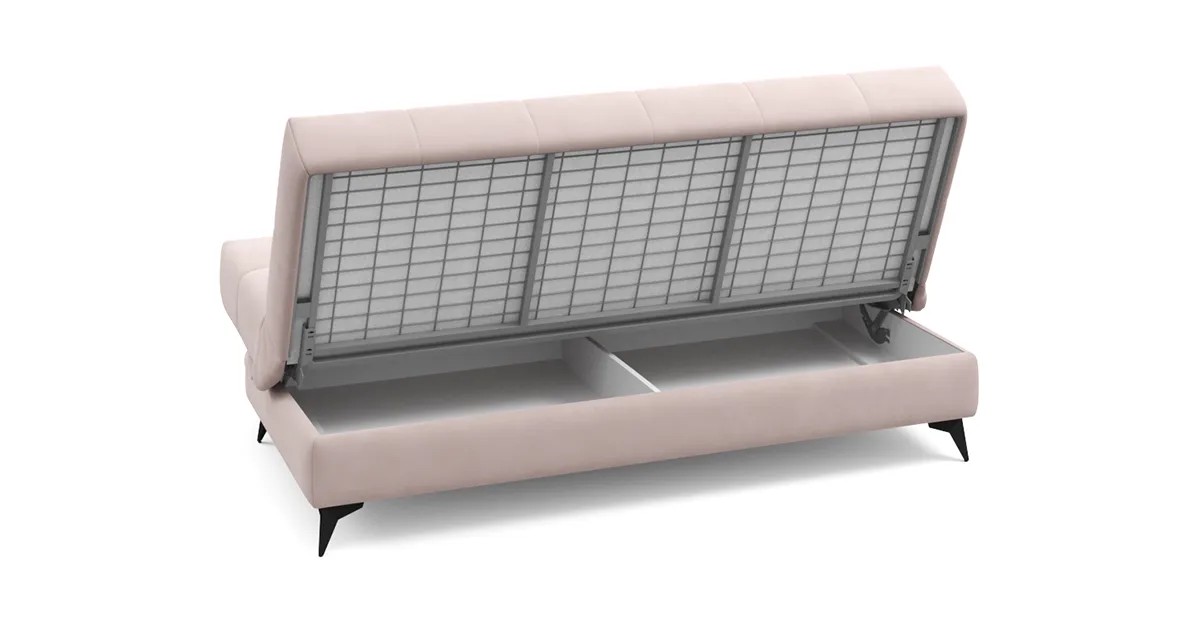 Несмотря на компактные размеры дивана Виго, под его основанием прячется полноценный бельевой ящик. Металлическая платформа дивана надёжна и очень долговечна благодаря легирующим добавкам и дополнительным рёбрам жёсткости в местах максимальной нагрузки. Высокопрочная сварная конструкция под мягким настилом позволяет достигнуть оптимального соотношения упругости и комфорта.