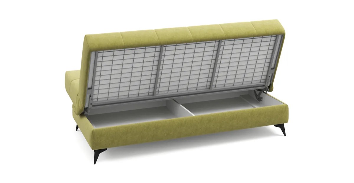 Несмотря на компактные размеры дивана Виго, под его основанием прячется полноценный бельевой ящик. Металлическая платформа дивана надёжна и очень долговечна благодаря легирующим добавкам и дополнительным рёбрам жёсткости в местах максимальной нагрузки. Высокопрочная сварная конструкция под мягким настилом позволяет достигнуть оптимального соотношения упругости и комфорта.