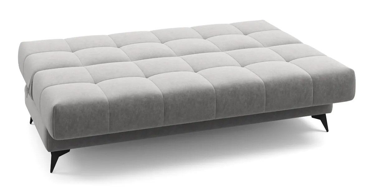Представленный диван с механизмом Клик-кляк, являющимся усовершенствованной версией механизма Книжка, позволяет легким движением превратить компактный диван в просторное спальное место без зазоров посередине. Особенностью такого механизма является возможность трансформации дивана в три положения – для сидения, отдыха полулежа и сна.