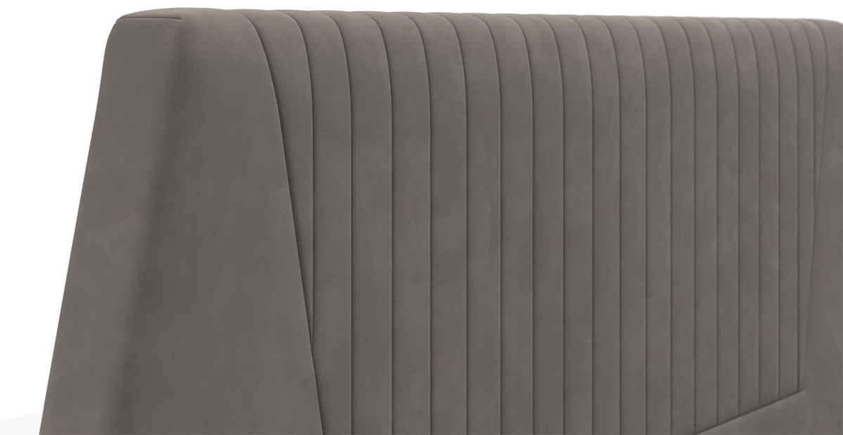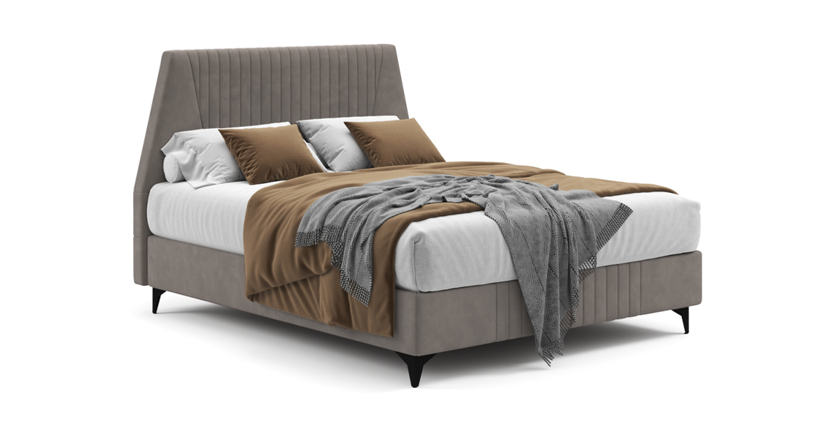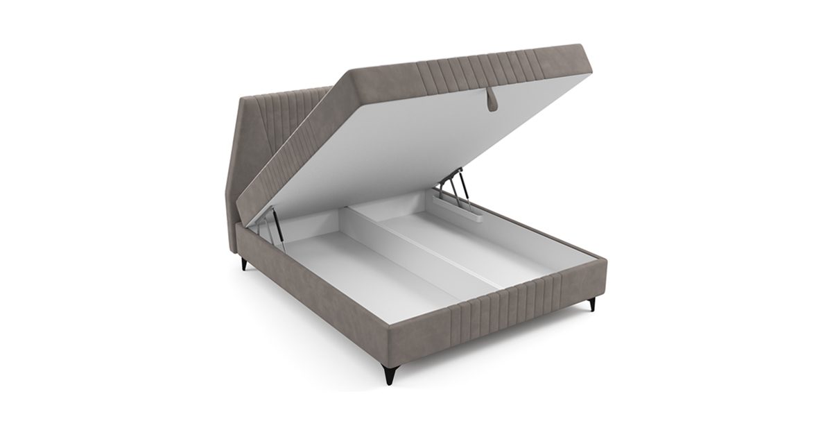 Ее особенности: высокое и мягкое изголовье со стильной стёжкой, интегрированный матрас толщиной 26,5 см с настраиваемой жесткостью.