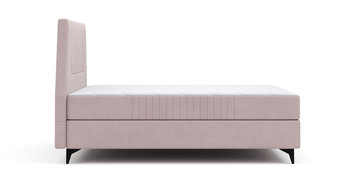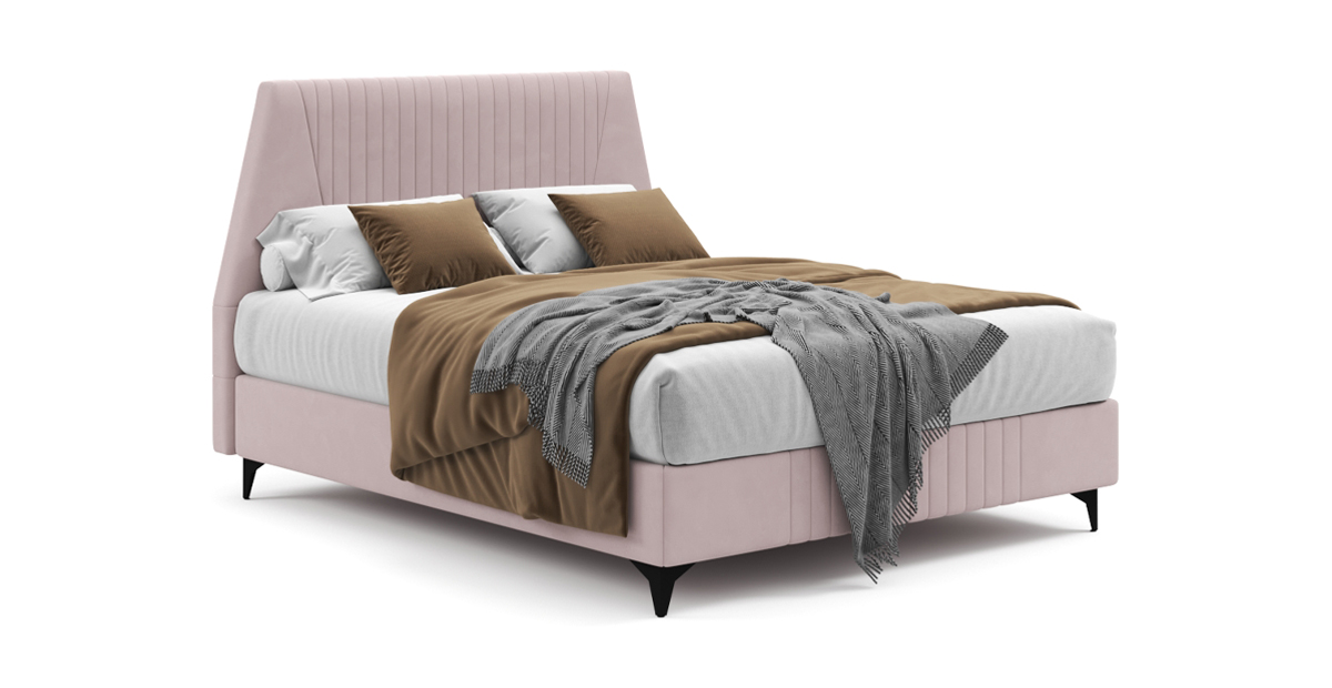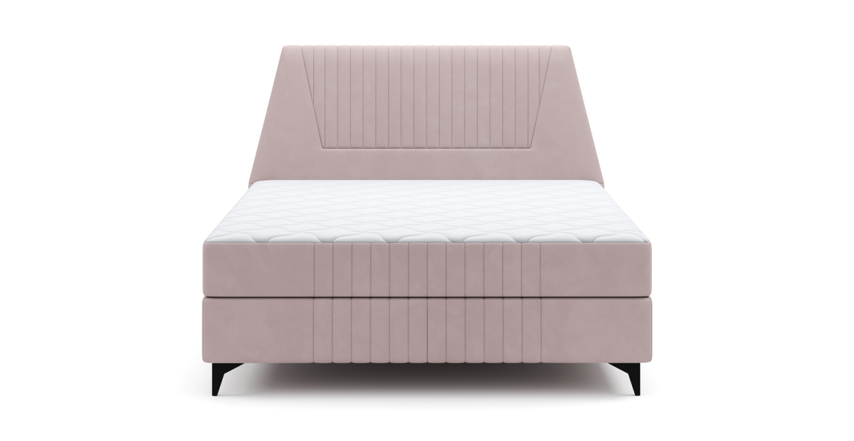 Ее особенности: высокое и мягкое изголовье со стильной стёжкой, интегрированный матрас толщиной 23,5 см с настраиваемой жесткостью.