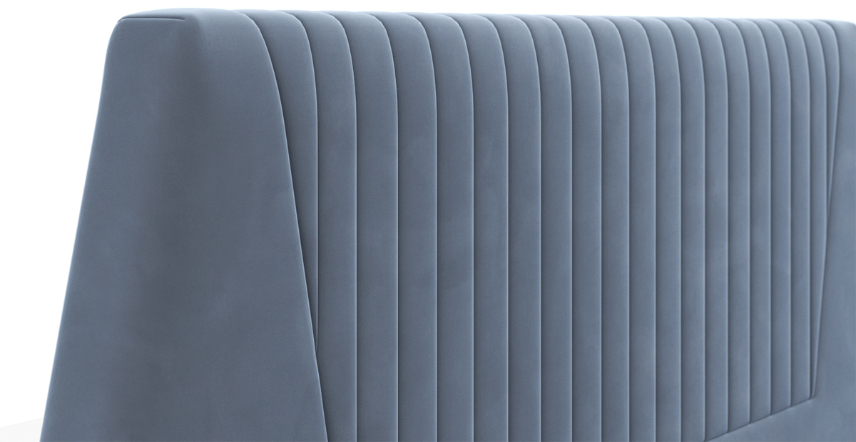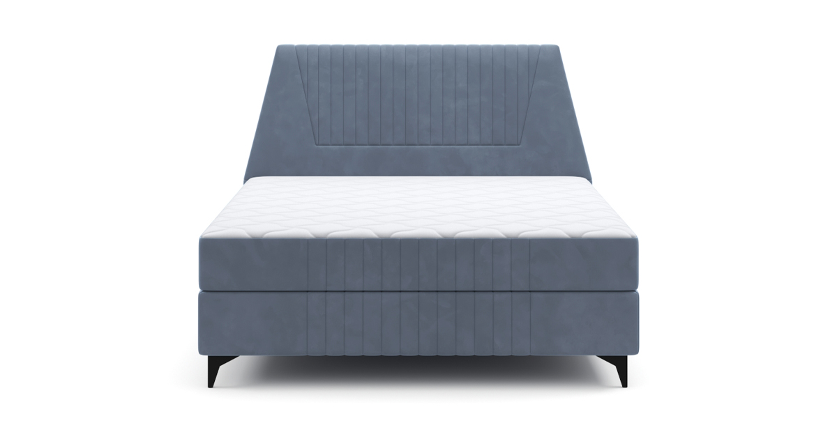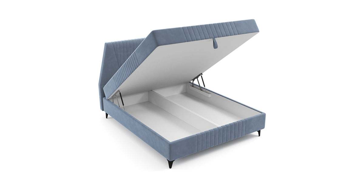 Ее особенности: высокое и мягкое изголовье со стильной стёжкой, интегрированный матрас толщиной 26,5 см с настраиваемой жесткостью.