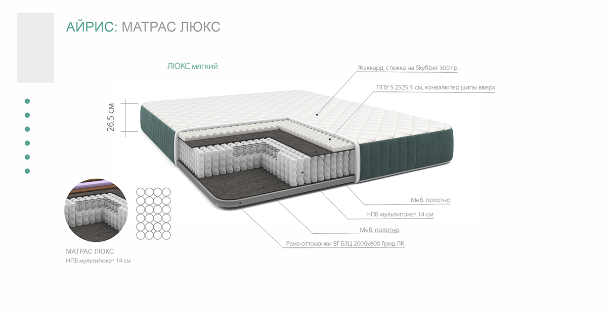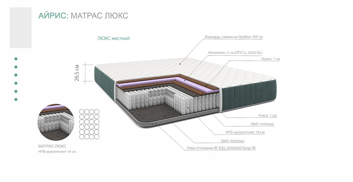 Кровать Айрис Люкс с матрасом впишется в любой современный интерьер и станет любимым местом в доме.