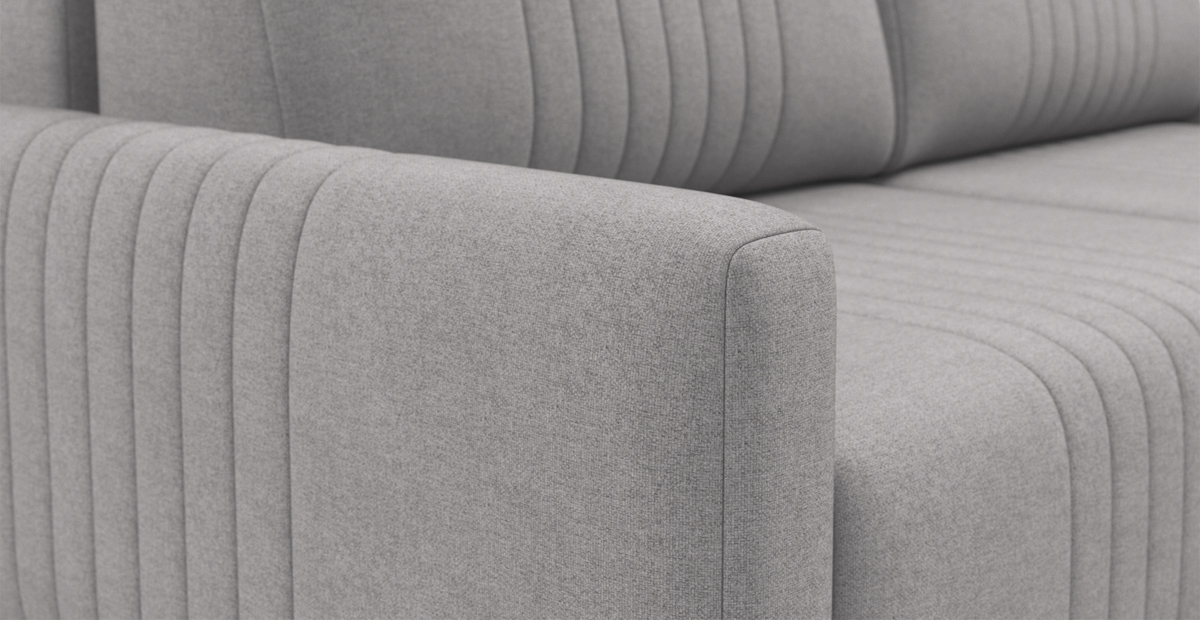 Спинка модели выполнена в основной обивочной ткани, что позволит вписать его в пространство-студию, легко разделив интерьер на функциональные зоны.