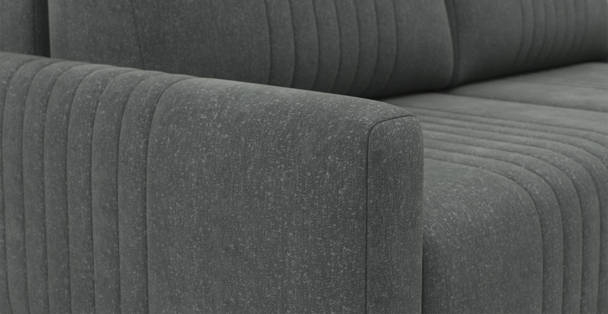 Спинка модели выполнена в основной обивочной ткани, что позволит вписать его в пространство-студию, легко разделив интерьер на функциональные зоны.