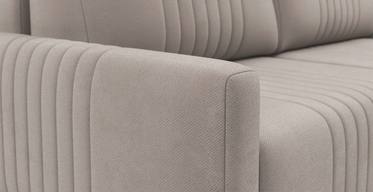 Спинка модели выполнена в основной обивочной ткани, что позволит вписать его в пространство-студию, легко разделив интерьер на функциональные зоны.