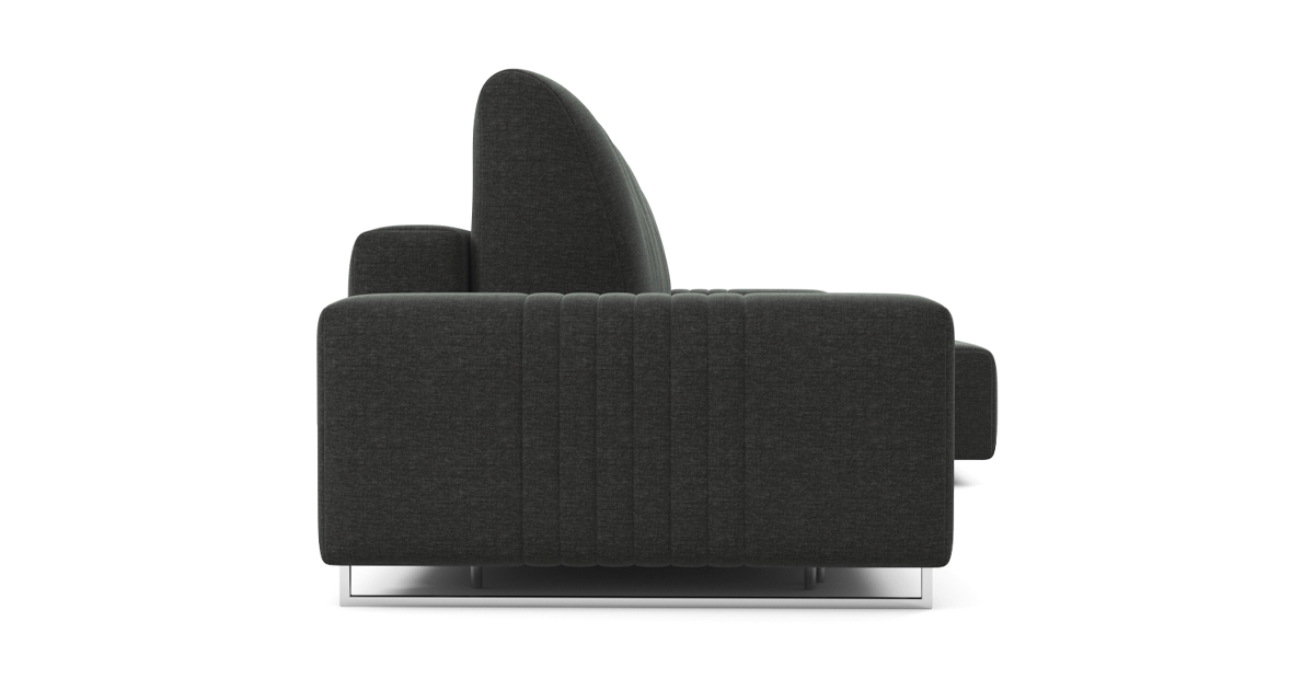 Спинка модели выполнена в основной обивочной ткани, что позволит вписать его в пространство-студию, легко разделив интерьер на функциональные зоны.